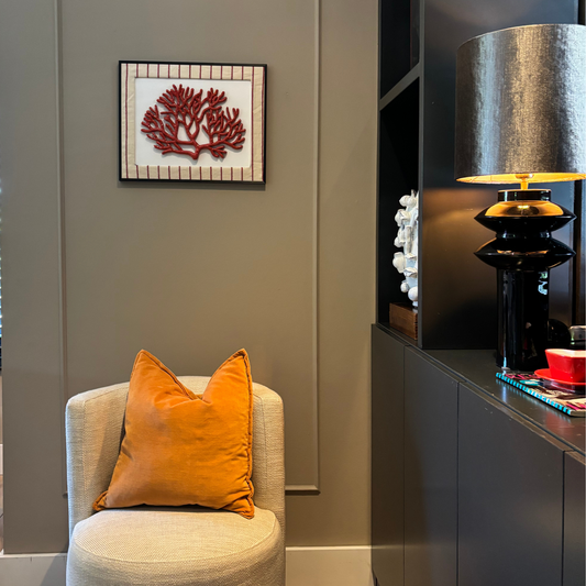 Koraal keramiek groot ingelijst met passe-partout off-white, 50X40cm