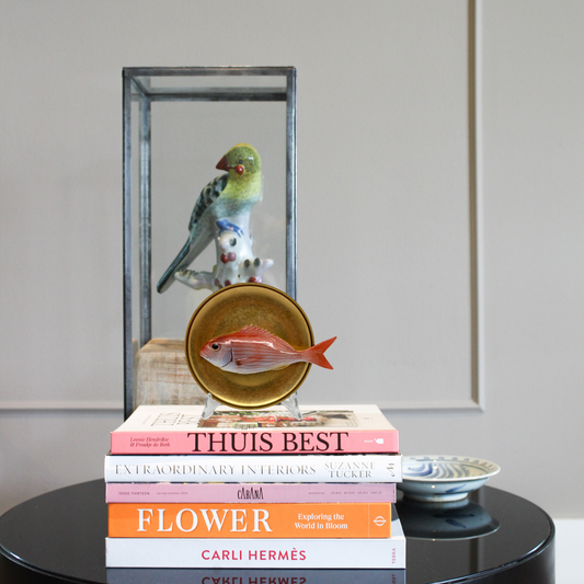 Sarago medio op donker bruin vintage bord, 16 cm rond