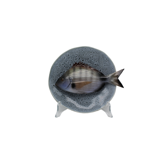 Sarago medio op blauw/grijs bewerkt bordje, 15 cm