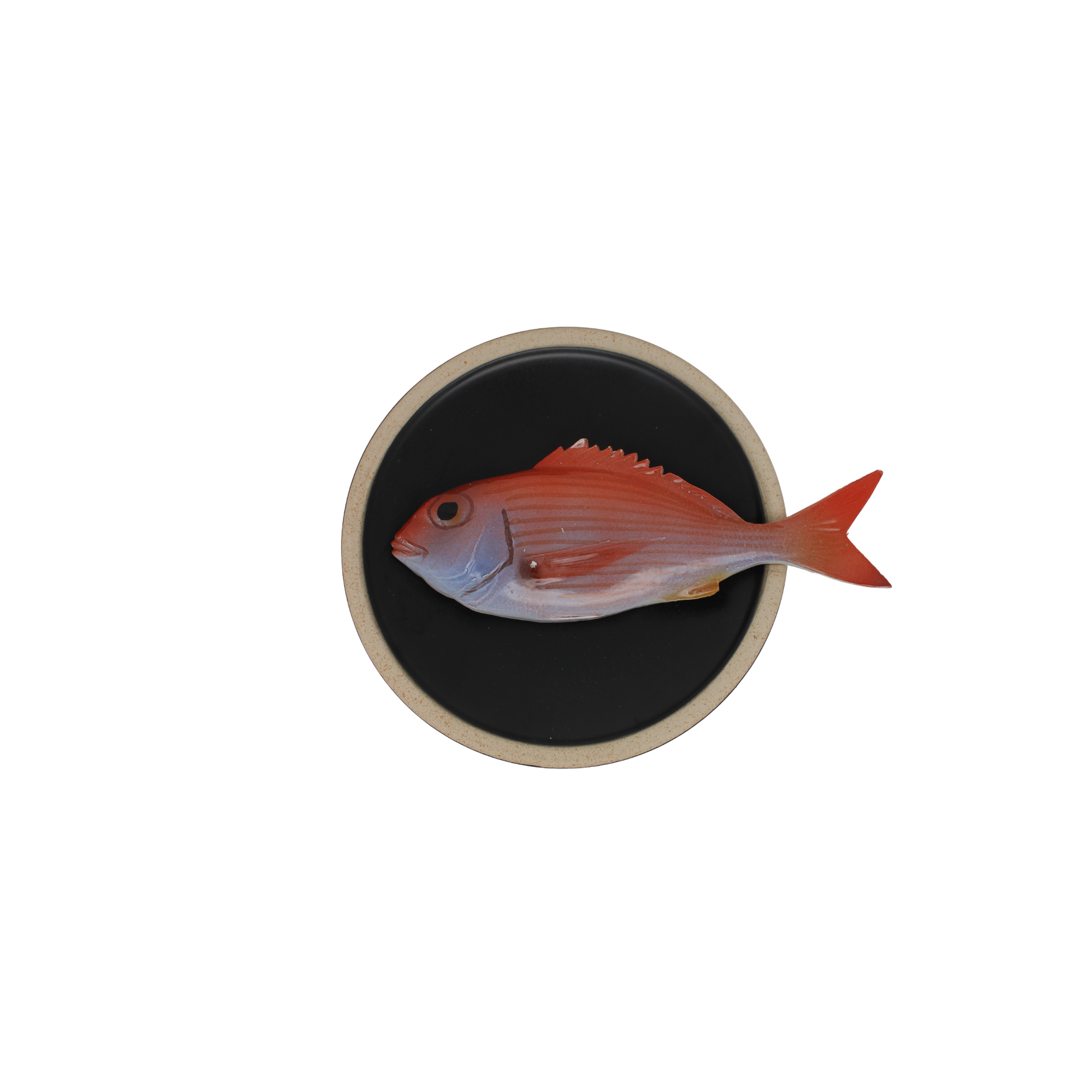 Pagello op zwart bordje met lichte rand, 15,5 cm rond. Aan de achterkant is een ophanghaakje bevestigd en kan direct aan de wand gehangen worden.