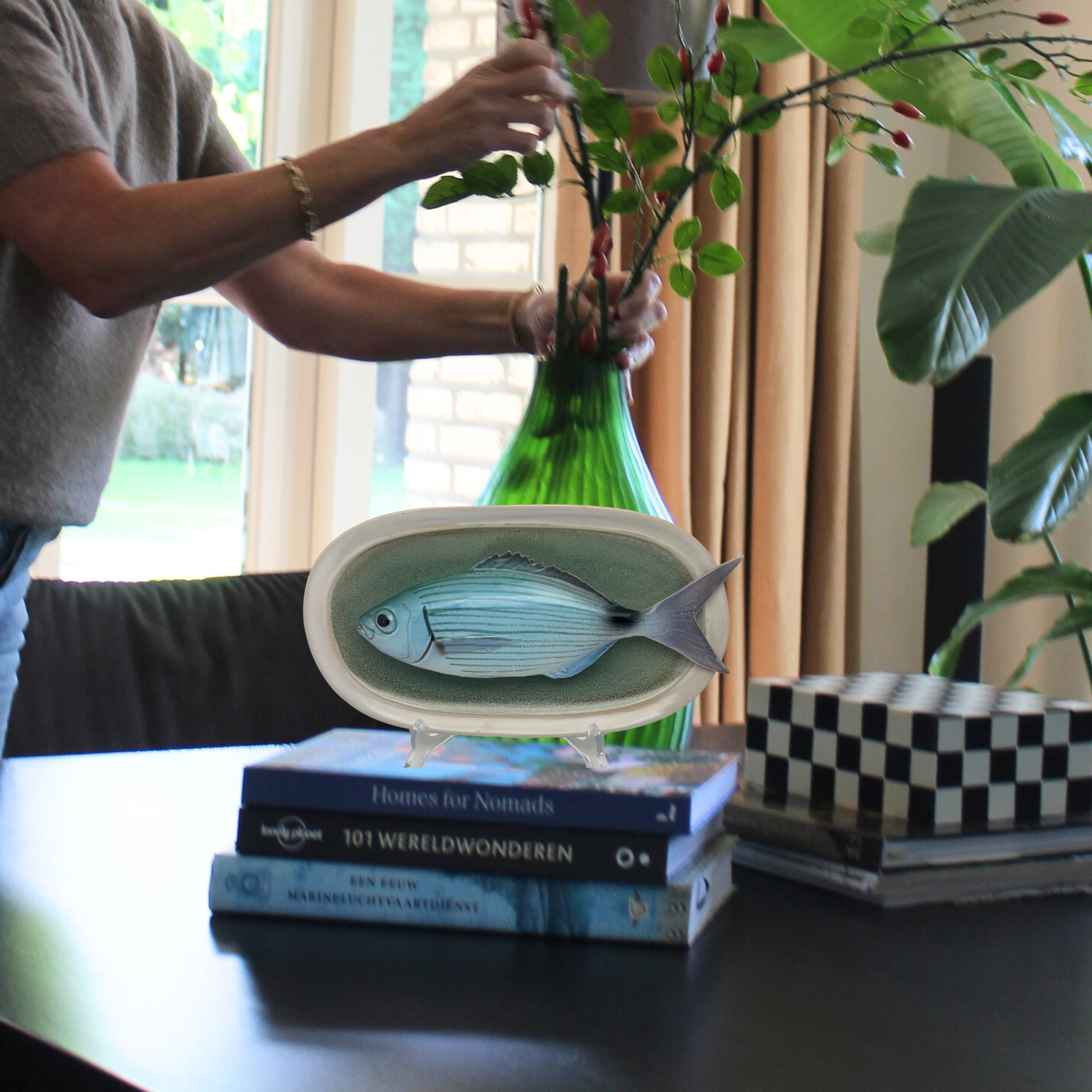 Occhiata op ovaal groen bord met lichte rand, 26x25cm