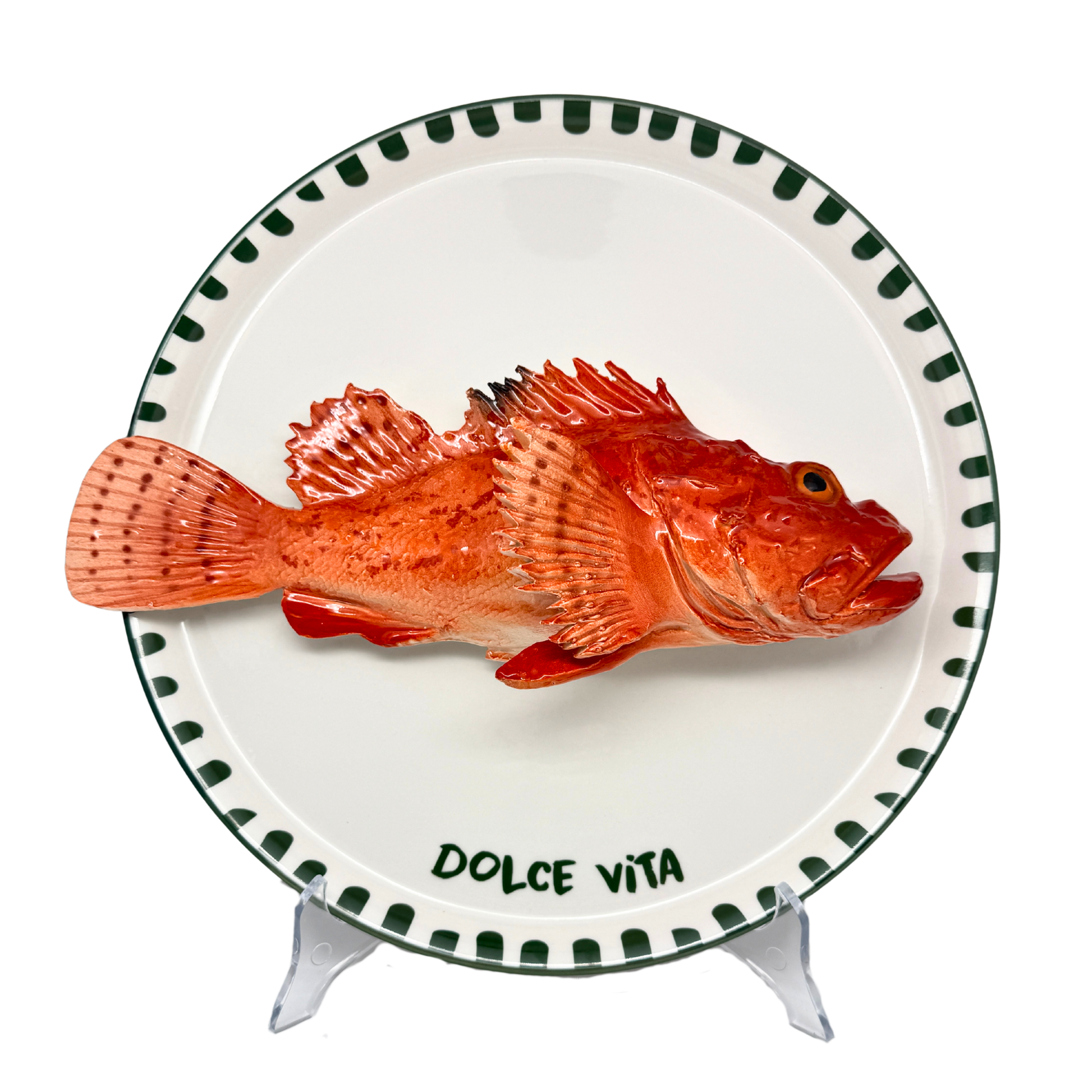 Cipolla op 'Dolce Vita" groen bewerkt bord, 31cm rond. Er zit een ophanghaakje aan de achterkant en kan het direct aan de wand gehangen worden.
