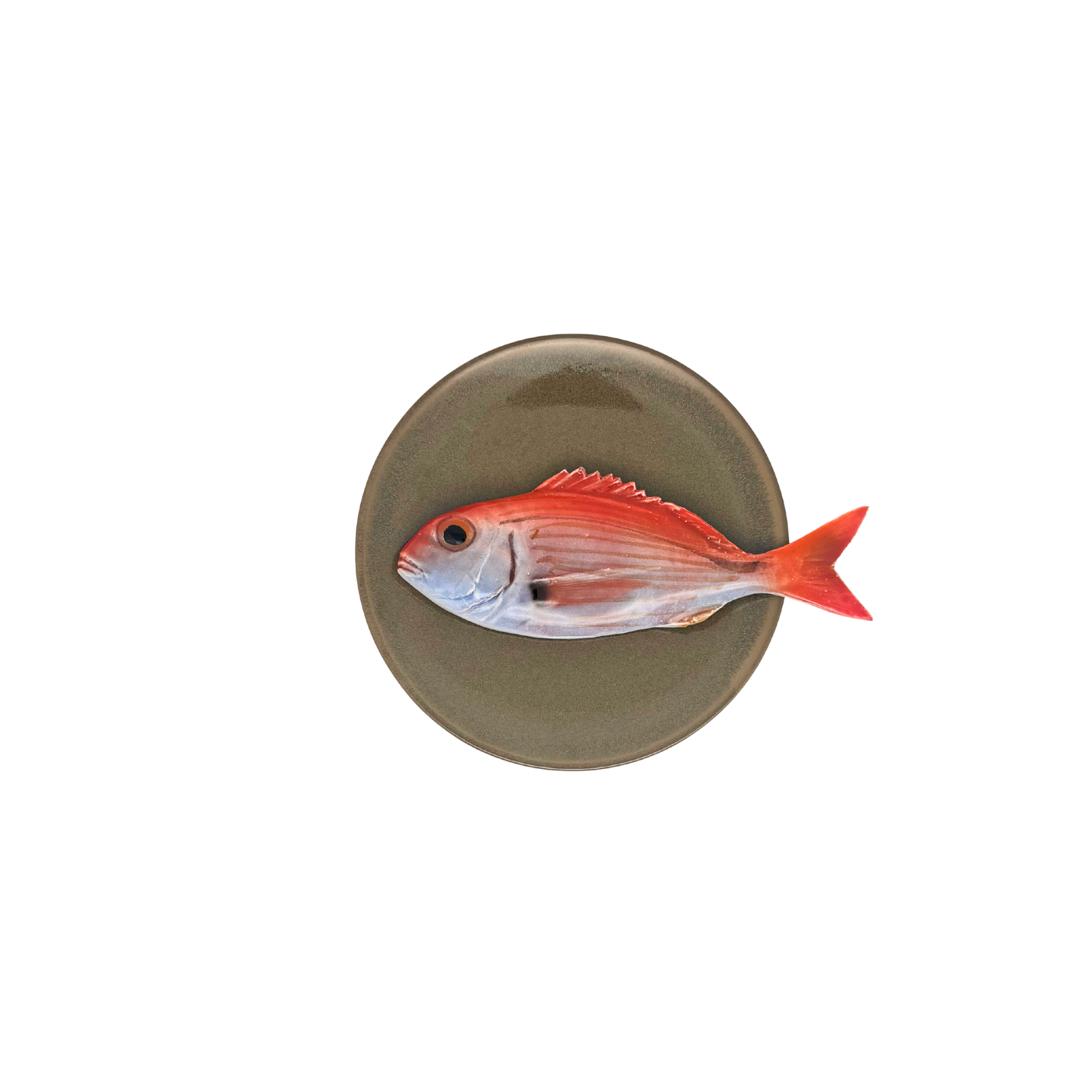 Pagello op een taupe kleur bordje, 16 cm rond. Aan de achterkant zit een ophanghaakje bevestigd en kan direct aan de wand gehangen worden.