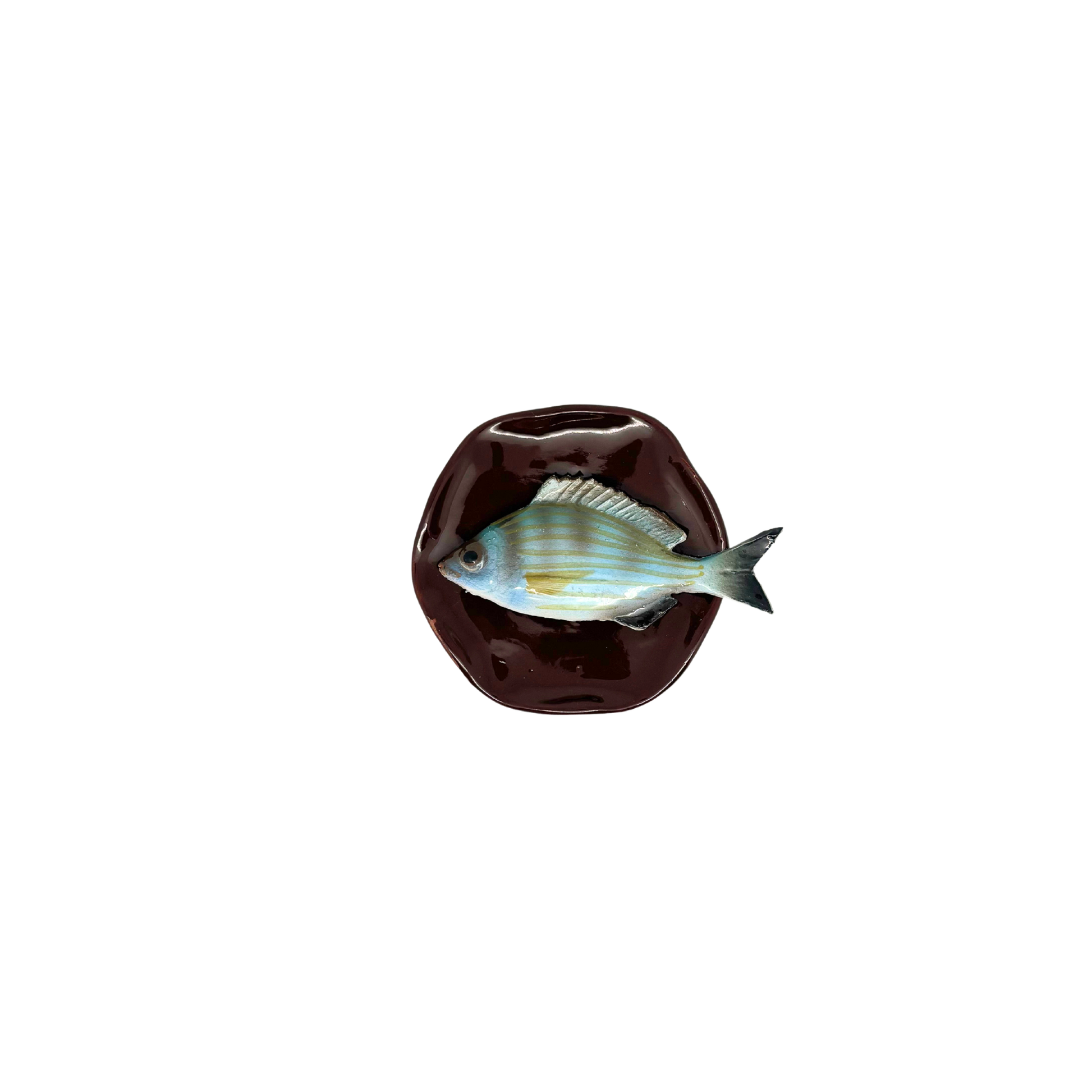 Tanuta piccolo op handmade donkerbruin bordje, 11 cm