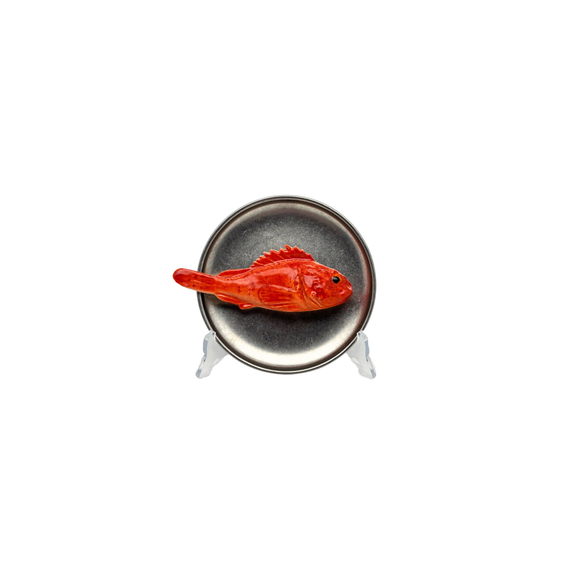 Scorfano op antiek zilver bord, 13.5 cm rond